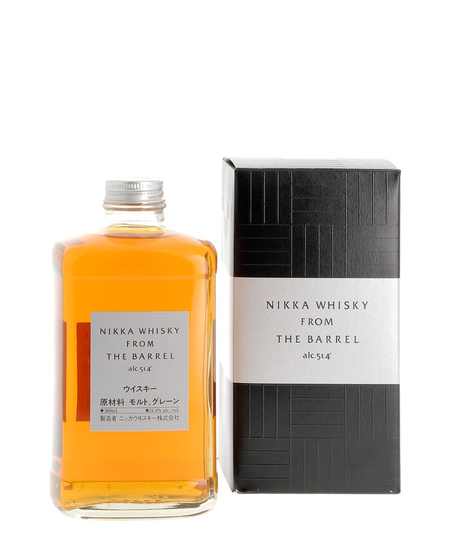 Whisky iconique de la maison Nikka, From the Barrel est un blended whisky unique en son genre, embouteillé à 51.4% alc. ce qui lui confère une grande richesse et intensité aromatique. Fruit de l'assemblage de nombreux whiskies, dont une base de whisky de grain (principalement du maïs) distillé en alambic Coffey et divers whiskies de malt des distilleries Miyagikyo et Yoichi, il est extrêmement complexe et équilibré.