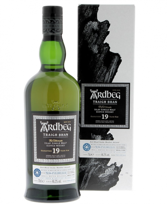 Cette 4 -ème édition du Ardbeg Traigh Bhan 19 âge est disponible en quantités extrêmement limitées. Cette quatrième version présente un nouveau symbole bleu qui permet de la distinguer des précédentes éditions, cher aux collectionneurs.